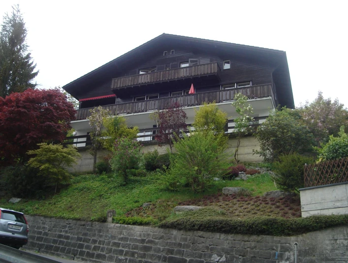 Der Hauptstrasse Richtung Stalden folgen. Die zweite Strasse rechts ist die Engenlohstrasse, das schöne Chalet befindet sich rechts.