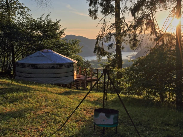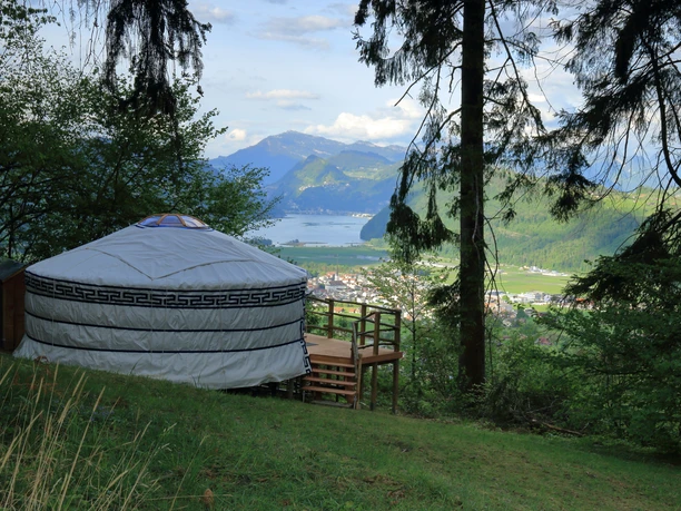 Die runde Form und das warme Ambiente in der Jurte geben dir das Gefühl von Ruhe und Geborgenheit. Die herrliche Umgebung und die fantastische Aussicht auf Vierwaldstättersee, Stanserhorn, Rigi und den Pilatus runden das besondere Jurten Erlebnis ab.