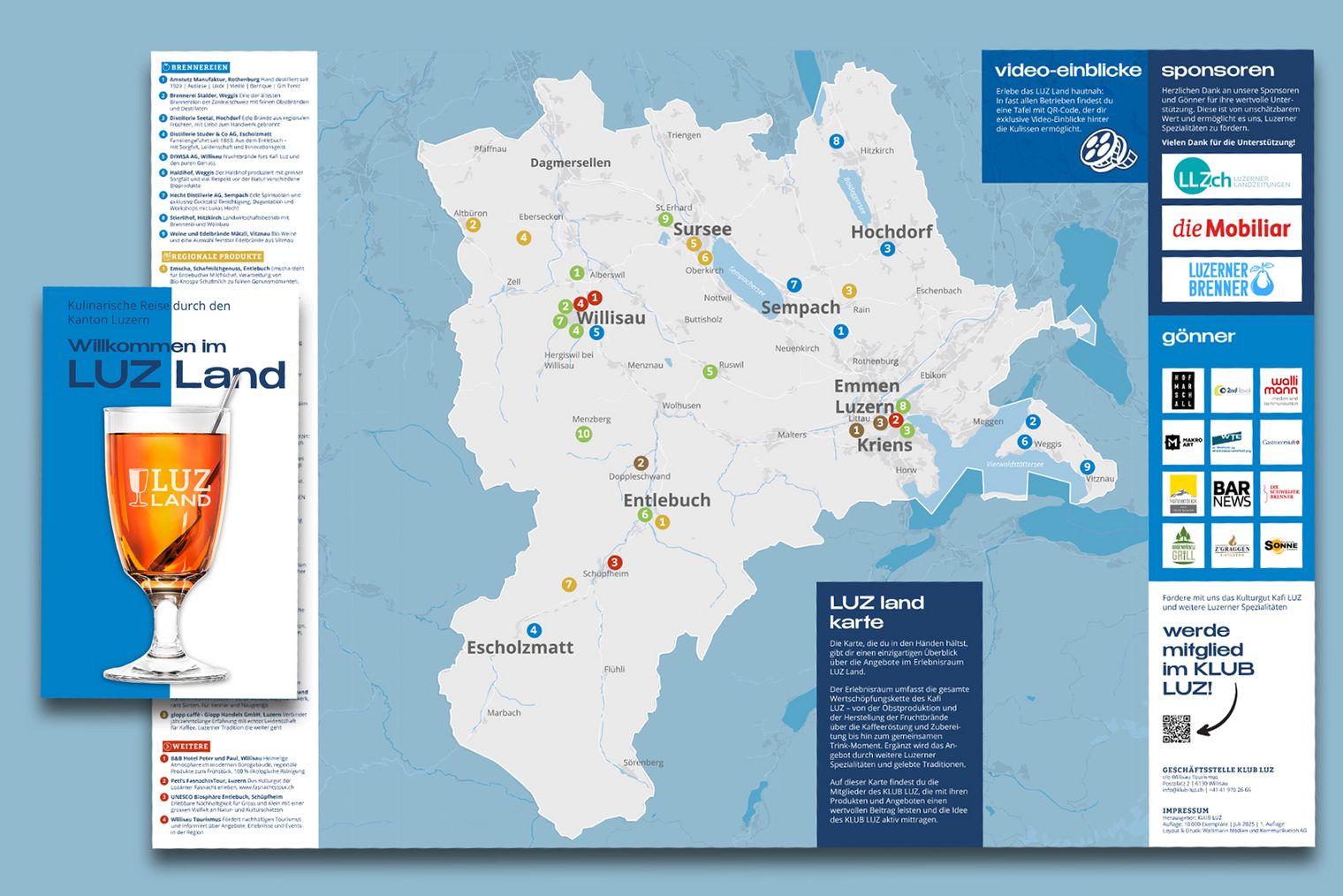 Unsere LUZ Land Karte zeigt dir auf einen Blick, was der Kanton Luzern rund um das Kafi Luz alles zu bieten hat: Von der Obstproduktion über die kunstvolle Herstellung von Fruchtbränden bis zur Kaffeeröstung und Zubereitung. Abgerundet wird das Angebot durch Luzerner Spezialitäten und Traditionen.