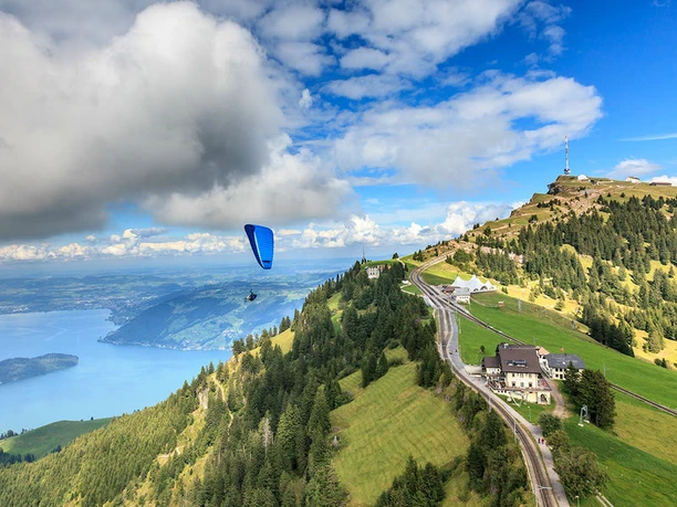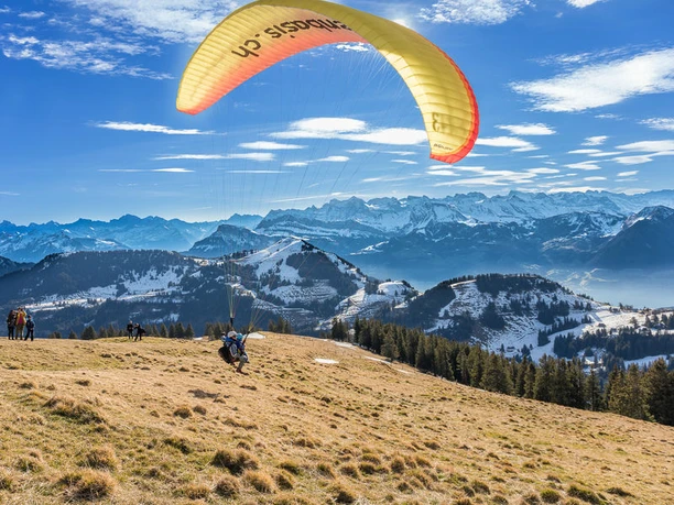 Die beliebtesten Startplätze befinden sich auf Staffelhöhe und auf dem Gipfel Rigi-Kulm. An den felsenreichen Nordklippen kommt zünftige Thermik für lange Höhenflüge auf. Offizielle Landeplätze finden Sie westlich von Küssnacht, in Weggis oder im Schwyzer Talkessel.