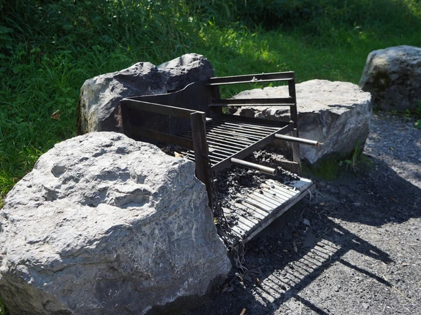 Infrastruktur: Feuerstellen mit Rost, Brennholz, Schattenzone, Sitzgelegenheit