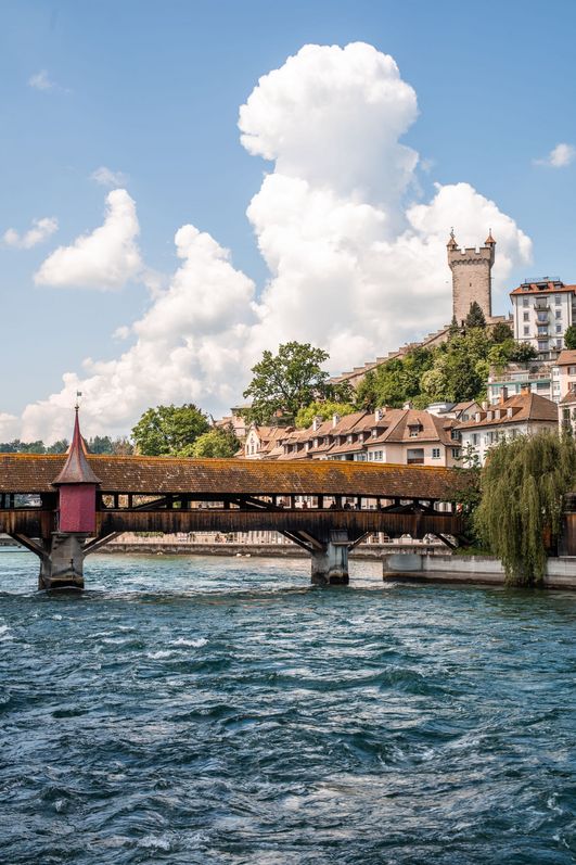 Nebst der Kapellbrücke gibt es eine weitere namhafte Holzbrücke in Luzern: Die etwas weiter reussabwärts gelegene Spreuerbrücke. Sie ist zwar weniger bekannt als die weltberühmte Kapellbrücke und etwas kürzer, trotzdem steht sie ihrer grossen Schwester in nichts nach.