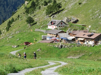 Auf der Blackenalp wird fast täglich frischer Alpkäse produziert. Es lohnt sich im Bergbeizli einen Halt zu machen. Zurück nach Engelberg geht es bis zur Fürenalp Talstation auf der gleichen Route. Nach dem Kiesparkplatz zweigt die Route in den Wald ab und führt auf Naturweg vorbei am Golfplatz der Engelberger Aa entlang zurück ins Klosterdorf.