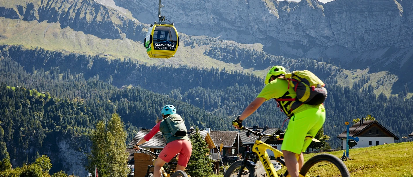 Die Tour kann auch ohne Anstieg gemacht werden. Dazu benutzt man die Gondelbahn zur Stockhütte und startet die Tour mit der Abfahrt bis zur Abzweigung alte Schlittelbahn.