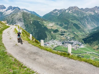 - Tour in umgekehrter Richtung: Furkapassstrasse bis Tiefenbach-Lochberg-Rossmettlen-Golfrundweg-Andermatt