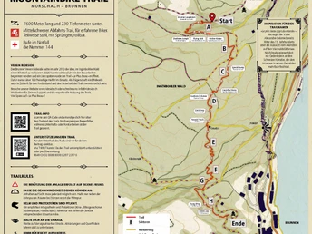 Was lange währt, wird endlich gut. Der Verein Rideside wartet rund zehn Jahre auf die Bewilligung für den Bau eines Biketrails im Ingenbohler-Wald. Dann aber geht es zügig voran. Im Frondienst entsteht eine abwechslungsreiche Strecke, die Bodenwellen, Anlegerkurven, Jumps und Drops vom Feinsten enthält. Seit der Eröffnung im Herbst 2021 steht der Trail allen offen. Vom Einsteiger bis zum versierten Crack werden hier alle ihren Spass haben, die schwierigen Passagen lassen sich umfahren. Den Trailhead erreicht man gemütlich auf gut ausgebauten Forststrassen. Wer es noch bequemer mag, nutzt den Bus von Brunnen nach Morschach.