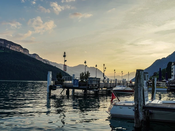 Fahren Sie bei Luzern auf die A14 in Richtung Zug. Beim Autobahndreieck Rütihof fahren Sie auf die Autobahn A4 in Richtung Brunnen. Nehmen Sie die Autobahnausfahrt Brunnen und folgen Sie den Wegweisern Richtung Brunnen am See.