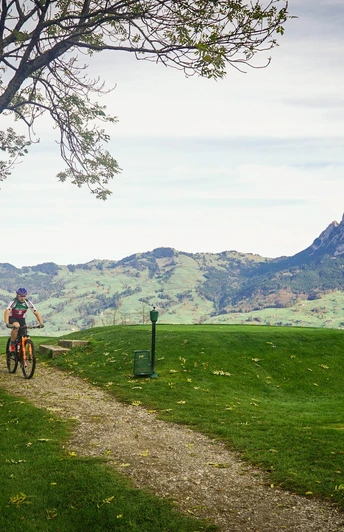 Am liebsten trainiert Andrea zu Hause in Morschach. Im Gebiet des Ingenbohler-Waldes und des Axensteins gibt es abwechslungsreiche und anspruchsvolle Bike-Strecken. Machen Sie es ihr nach und vergessen Sie nicht, zwischendurch eine Pause einzulegen. Die Aussicht auf die umliegende Bergwelt und den Vierwaldstättersee überwältigt immer wieder aufs Neue.