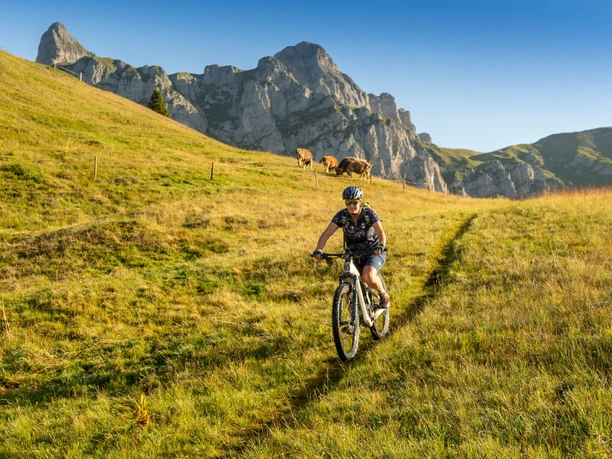Nun begeben Sie sich auf die attraktive Abfahrt von 2073 auf 447 m, wobei das erste Teilstück bis zur Gisleralp äusserst anspruchsvoll ist und nur technisch versierte Biker die ganze Strecke im Sattel bleiben. Nun geht es Auf und Ab auf der breit angelegten Naturstrasse, welche mit einer attraktiven Abfahrt über die Eggberge und den Altdorfer Wald endet.