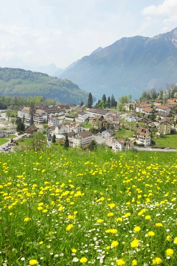 Morschach erreichen Sie vom Stoos aus schnell und einfach mit der Luftseilbahn und einem kurzen halbstündigen Fussmarsch. Oder Sie bevorzugen eine schöne Wanderung bergab über ein Kiessträsschen und durch die gemischten Wälder an der Nordwestflanke des Fronalpstocks. Fast unten angekommen entscheiden Sie sich beim Wegweiser für einen kurzen Abstecher zum Landrestaurant Nägelisgärtli oder gehen weiter auf dem Panoramaweg Morschach. Dieser führt Sie via Lourdes-Grotte mitten ins Dorf Morschach.