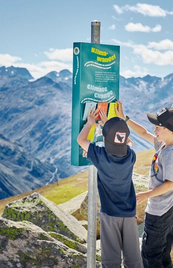 Der Erlebnisweg umfasst acht Posten, welche am Wanderweg vom Gütsch zur Platte verteilt sind. Für Kleine und Grössere gibt es viel zu entdecken - ein grosses Holzmemory mit einheimischen Pflanzen und Kräutern, ein Fernrohr, um die Gletscher zu begutachten, eine Riesenschaukel oder ein Klanginstrument sind nur einige der Elemente, die Teil des Erlebnisweges sind. Der Weg ist breit und gut ausgebaut und für Kinder daher sehr gut geeignet. Auf dem Weg empfiehlt sich ein Halt beim Lutersee für eine Verschnaufpause und Abkühlung im erfrischenden Bergwasser. Auf der ganzen Wanderung geniesst man eine traumhafte Aussicht auf die umliegende Bergkulisse.