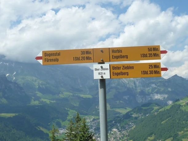 Mit der Luftseilbahn Fürenalp schweben Sie die senkrechte Wand empor zum Bergrestaurant Fürenalp. Ein einmaliges Panorama und ein heimeliges Bergrestaurant empfängt Sie. Von hier startet ihre Wanderung über Alpwiesen vorbei an verschiedenen Qullen und Schiefersteinbrüchen. Auf dem Höhenweg haben Sie auch den Alpengolfplatz sowie das Titlismassiv stets im Blickfeld. Weiter laufen Sie zur Alp Dagenstal mit dem Wasserkraftwerk des Klosters Engelberg, Von hier führt der Weg entlang am Hahnenmassiv, dem Hausberg von Engelberg. Bei der Alp Ober Zieblen haben Sie die Wahl entweder ans Ende der Welt / Horbis zu laufen oder via unter Zieblen zum Restaurant Schweizerhaus. In beiden Gaststuben können Sie sich gemütlich entspannen und sich stärken für die letzten Meter bis nach Hause.