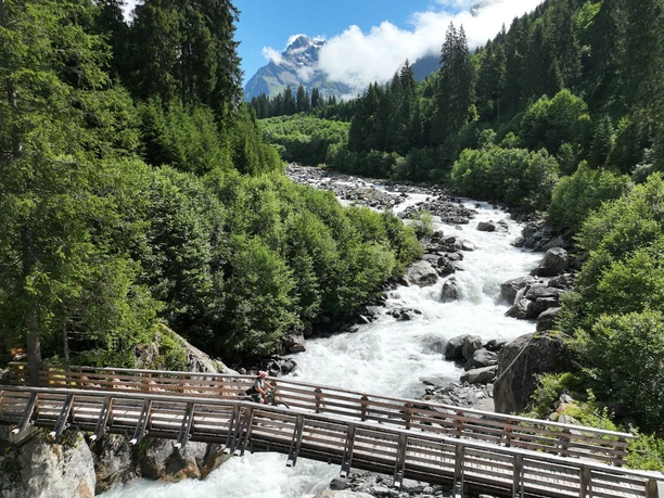 Von Amsteg führt die erste Etappe Ihrer Tour entlang der Asphaltstrasse ins Dorf Bristen. Die zum Teil in den Fels gesprengte Strasse schlängelt sich in engen Kurven in die Höhe und lässt Sie den Blick immer wieder ins Tal schweifen. Nach Bristen können Sie sich auf dem flacherem Teilstück bis zur Luftseilbahn Golzern erholen.