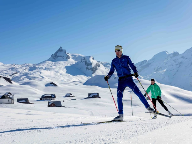 Zwischen dem Sessellift Erzegg und dem Restaurant Distelboden befindet sich auch der Einstieg der Melchsee-Loipe. Die kurze, flache Strecke dem gefrorenen Stausee entlang bietet einen wunderbaren Ausblick auf das autofreie Frutt-Dörfli und auf die markante Bergkette mit Rothorn, Glogghuis, Hochstollen und Brünighaupt. Die Loipe ist ideal, um sich einzulaufen und eine erste Orientierung im Gebiet zu verschaffen.