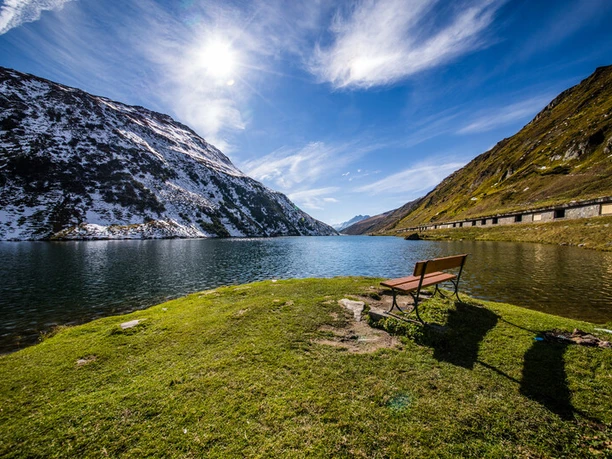 Der türkisblaue Oberalpsee auf der Passhöhe lädt zum Verweilen ein. Hier steht auch der einzige und höchstgelegene Leuchtturm der Alpen. Der Nachbau steht als Symbol für die Quelle des Rheins, welcher in der Nähe entspringt. Das Original steht bei der Mündung des Rheins nahe Rotterdam.