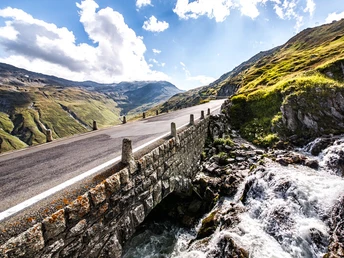 Pass- und Alpenfeeling pur in Andermatt, ideal für VelofahrerInnen. Eine lange Gerade führt zunächst zum benachbarten Hospental mit seinem gut erhaltenen Dorfkern. Nach Realp steigt die Strasse abrupt an – und mit ihr ebenso der Puls. Rund tausend Höhenmeter mit maximal elf Prozent Steigung gilt es zu bewältigen. Mit etwas Glück hört man hin und wieder ein Murmeltier oder die grandiose alte Dampfbahn vorbeipfeifen. Nach der Furkapasshöhe (2436 m ü. M.) darf man sich auf eine rassige Abfahrt freuen. Erreichet wird bald einmal der Rhonegletscher beim Hotel Belvédère. Spätestens hier ist man nicht mehr alleine. Zahlreiche Touristen wollen sich den Gletscher anschauen, welcher durch die Klimaerwärmung einiges von seiner ursprünglichen Grösse eingebüsst hat. Heute liegt die Gletscherzunge noch ungefähr auf der Höhe des Hotels. Nach Gletsch beginnt sich die Landschaft zu ändern, und in Oberwald angekommen, befindet man sich bereits in deutlich flacheren Gefilden.