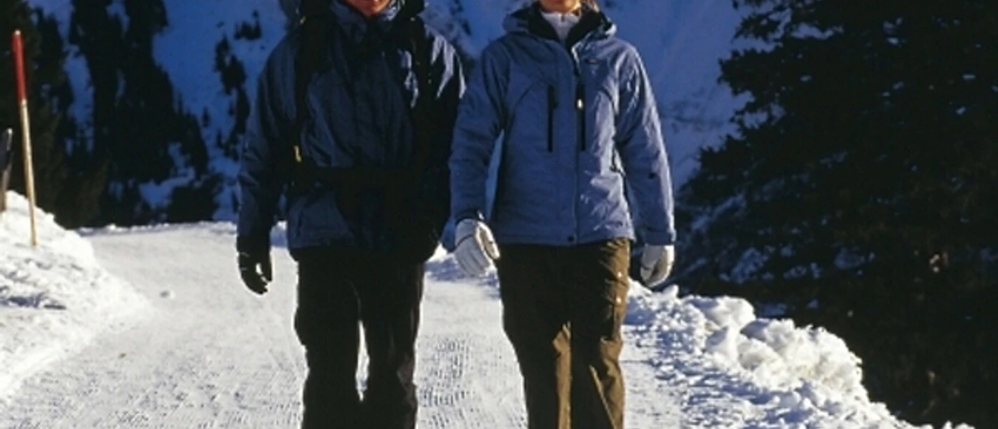 Ein Netz von rund 49 km Winterwanderwegen zieht sich über die Talebene und die winterliche Berglandschaft. Alle aufgeführten Routen sind violett markiert und nummeriert.