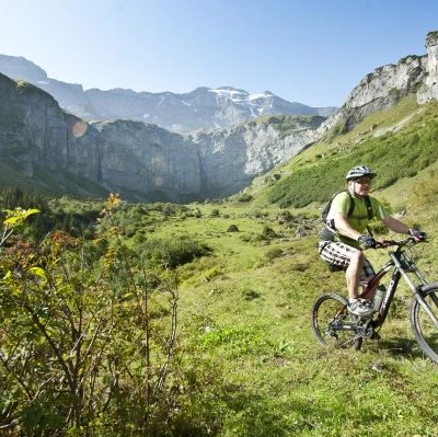 Nach einem kurzen Stück auf der Klausenpassstrasse biegen Sie ab auf die Naturstrasse, die zur Alp Wängi führt. Die Steigung ist regelmässig und angenehm und führt Sie entlang saftiger Alpweiden über die Alp Orthalten auf den Fisetenpass - mit 2036 m der höchste Punkt der Tour und idealer Rastplatz. Geniessen Sie das kaum zu übertreffende Panorama über den Urnerboden, den Klausenpass, den Claridengletscher und die Glarner Alpen, bevor Sie die genussreiche Abfahrt über die Alp Gemsfairenhüttli in Angriff nehmen.