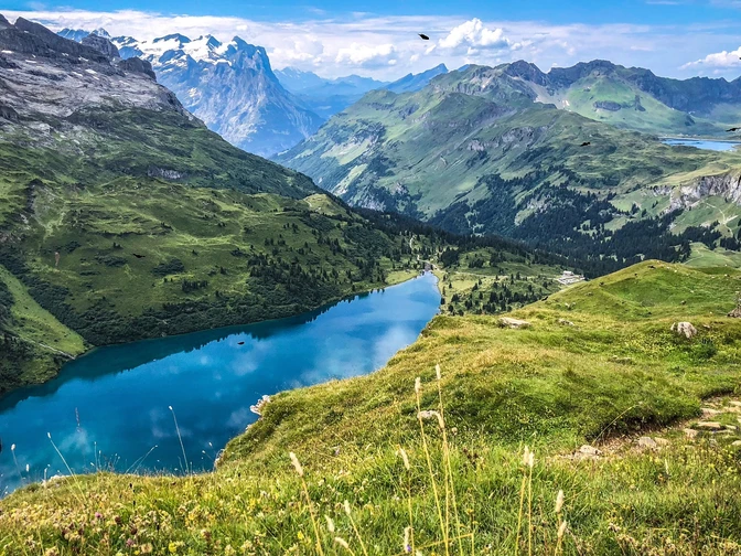 Bis zur Tannalp beim Tannensee steigen wir leicht auf durch schönste Aalpenflora. Dort erwartet uns ein Gasthaus und eine Käserei. Die Gratwanderung über das Balmeregghorn bis Planplatten erlaubt uns einen atemberaubenden Blick auf das Berner Trio Eiger, Mönch und Jungfrau.