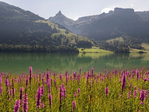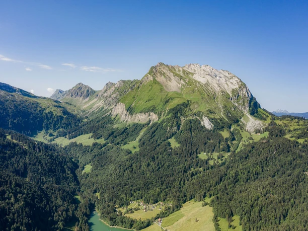 Eine Genusswanderung ist der Rundgang um den Wägitalersee. Der Start der Wanderung erfolgt beim Dorf Innerthal, beim Postautohalt. Man hält sich links Richtung Halten. Der Rundgang befindet sich ausschliesslich auf der Stausee-Strasse. Diese wird zwar nur wenig befahren, ist aber leider ganz herum asphaltiert. Dies tut der Attraktivität aber keinen Abbruch. Man wird mit einem doch einzigartig schönen Naturpanorama belohnt. Bei Halten ist es vorerst ein Mehrfamilienhaus, das mit einer grossen Zwergenlandschaft auffällt. Dann aber widmet man sich am besten wieder dem See und den umliegenden Bergen. Auf den ersten Metern Richtung Sännegg, Blatti und Bruch ist es vor allem der Fluebrig oder Diethelm mit «Turner», Gantspitz und Wännifirst, der einem ins Auge sticht. Ab und zu lohnt sich auch ein Blick zurück, Richtung Norden, wo der Gross Aubrig lockt. Kurz nach Ziggen geht es in den Wald hinein. Ein fast unscheinbarer Wegweiser an der Strasse weist hier auf ein kleines Einod am Wägitalersee hin: die Hundlochquelle. Man sollte es sich nicht nehmen lassen und die paar Meter auf Seehöhe abzusteigen und die Quelle, die einer Grotte ähnelt, besuchen. Man kann sogar ganz absteigen und in die schöne, aber feuchte und tropfende Grotte einsteigen. Das herrlich klare Wasser wirkt einladend. Dann geht es weiter bis zum Seeende. Bei der Au kann man einen ersten Zwischenhalt zur Stärkung oder Durstlöschung einplanen. Kleine Spezialitäten gegen den Hunger sind ebenfalls erhältlich. Und die Aussicht von der Terrasse Richtung Schiberg, Bockmattli und den See ist ebenfalls einladend. Danach geht es weiter, dem hinteren Seeufer entlang bis zur Staumauer und von dort wieder zurück nach Innertal. Unterwegs hat man noch recht guten Einblick auf den schier unbezwingbar erscheinenden Zindlenspitz. Das täuscht aber, er kann erwandert werden.