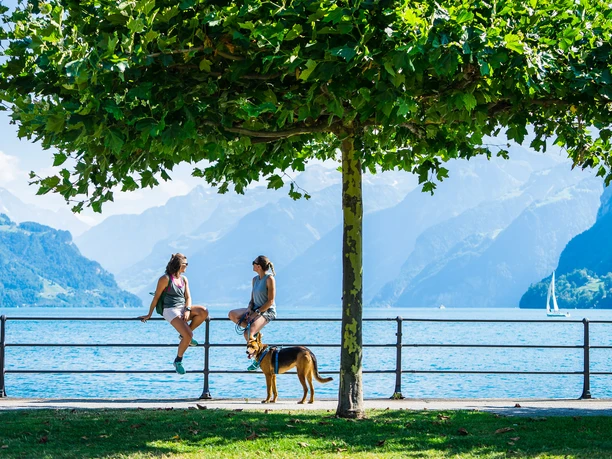 Von Brunnen über den Waldstätterquai und den Auslandschweizerplatz an die Seestrasse bis nach Brünischart. Hier beginnt der Bergwanderweg durch die südländisch anmutende Waldvegetation mit herrlicher Rundsicht. Via Gersau erreichen Sie dann Vitznau.