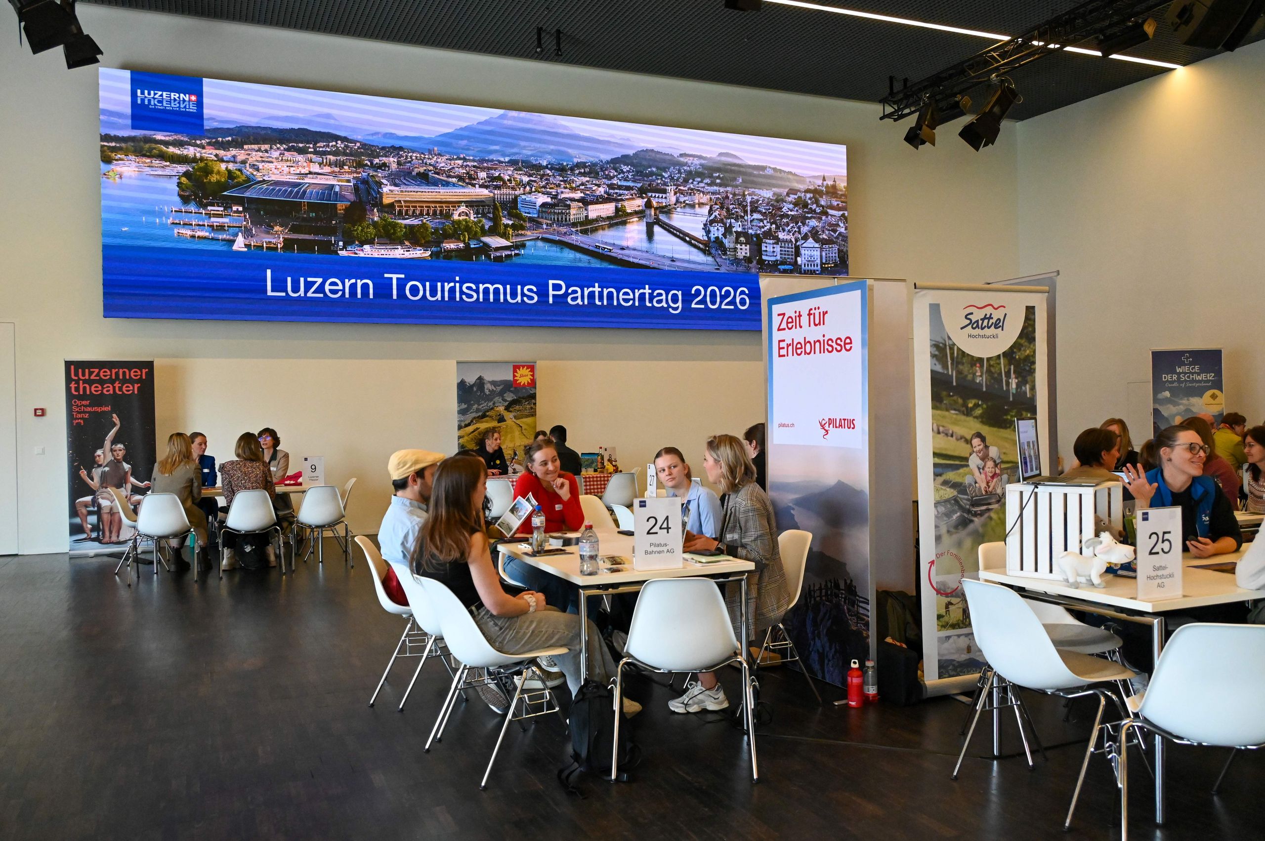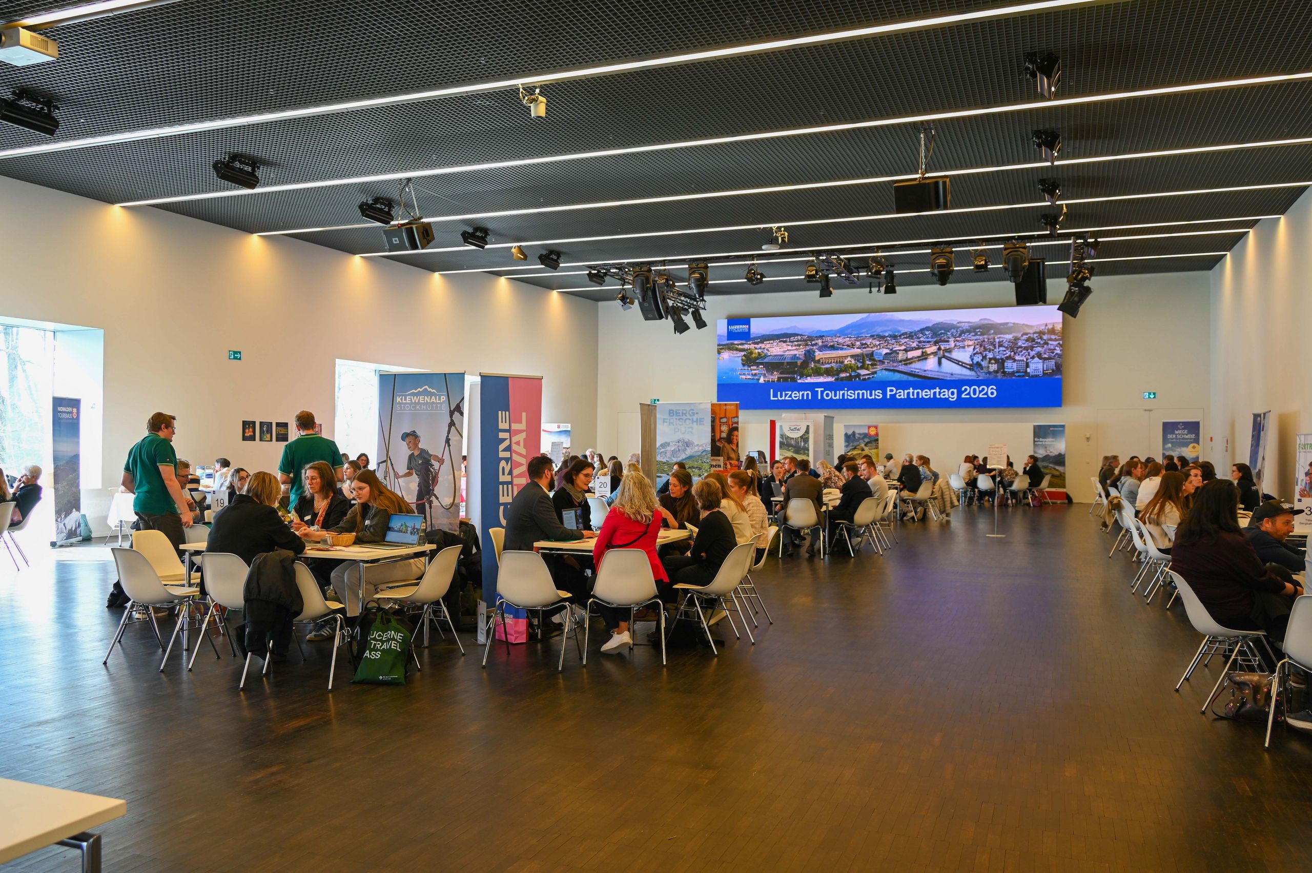 Neben der Begrüssung im IMAX wurde der Anlass besonders durch die aktive Mitwirkung der Teilnehmenden am Workshop geprägt. Unser besonderer Dank gilt den 26 Tourismusausstellern und über 150 Teilnehmenden. Zum Abschluss boten erfrischende Drinks und ein Apéro Riche die perfekte Gelegenheit zum Networking.