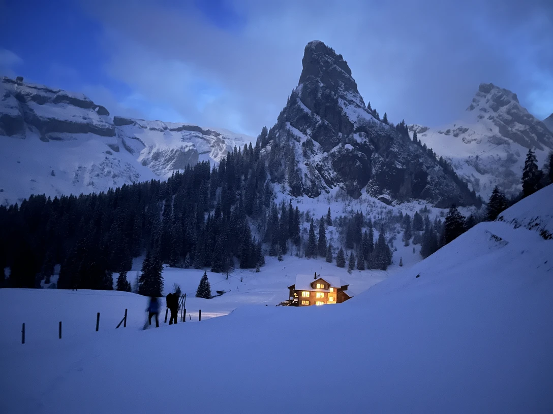 Afterwards, we enjoy a well-earned and delicious fondue together in the Alpstubli.