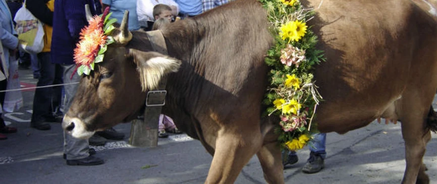 Autumn market with a wide range of local products and a festival restaurant as well as a cattle show with awards. Afterwards, the decorated animals are driven home.