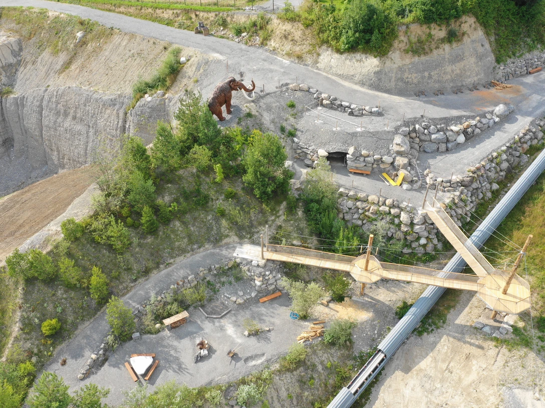 The freely accessible adventure area is located in a disused zone at the edge of the gravel pit. Pioneer plants are found there, as they were characteristic after the last glacial melt. Nowhere can our climate history, geology, botany, zoology and cultural history be made more visible than in a gravel pit. At various information stations you can puzzle, touch and try things out - and quickly you become part of history yourself!