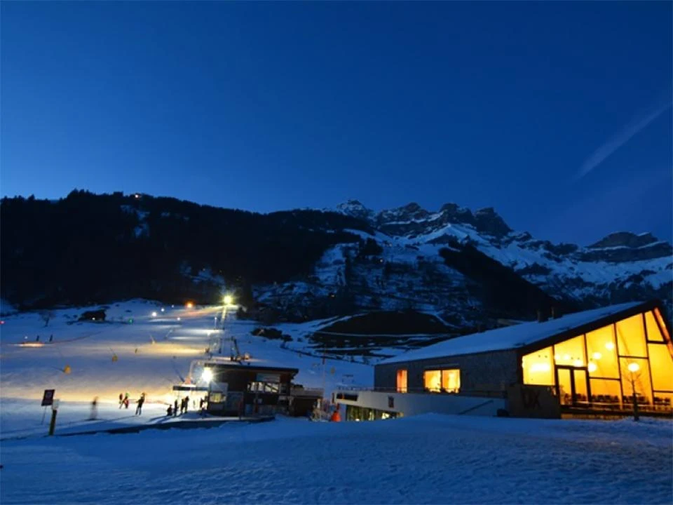 The slopes are illuminated with the first LED slope lighting in Switzerland.