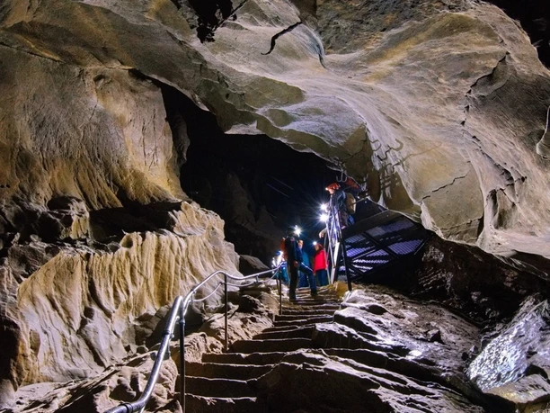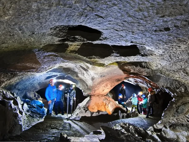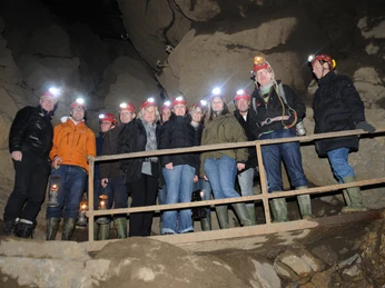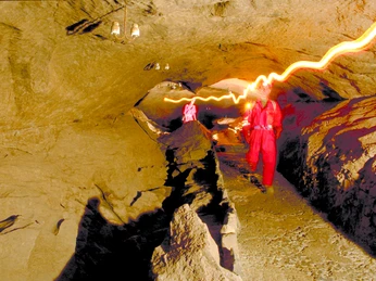 This tour is also easy to do without physical fitness, but surefootedness is required. Suitable: for families (children from approx. 6 years), couples, individuals and small groups. Larger groups can define their own preferred date and book a private guided tour. Bring: please bring warm clothes and good footwear (hiking boots are ideal, robust sneakers with good profile and non-slip sole are also ok). Unsuitable are sandals, cloth shoes, light sneakers etc.). The cave temperature is 6°C all year round. The humidity is almost 100%.