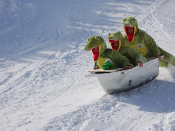 A plumber has to replace an old bathtub in a house in winter. While unloading, the tub escapes and glides over the snow. It must be even better with a passenger, he thinks, and places his little brother in the bathtub on a snowy hill. The improvised bobsleigh works perfectly - a new "sport" is born. The plumber tells his colleague about this funny episode and so the young men come up with the idea of holding a bathtub race. Since one of them works on the Stoos, it was obvious to organize the race on the Stoos. Our research revealed that there are already various bathtub races, but they all take place on water and not on snow. Our bathtub race is therefore the first and so far the only race of its kind.