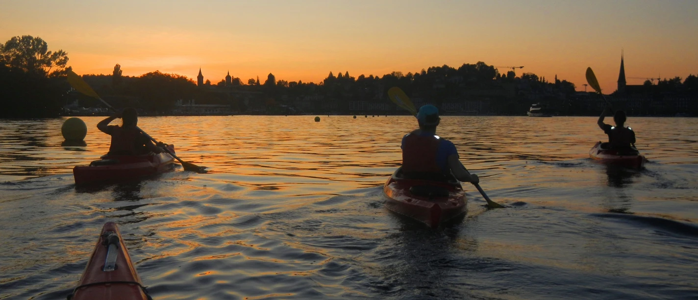 Sunset paddling is pure evening romance: enjoy the sunset over Lake Lucerne together and experience an unforgettable canoe trip in a sea kayak or Canadian canoe. You will be accompanied by competent canoe guides. It is a highlight for both the inexperienced and the experienced and an ideal opportunity to gain an insight into the sport of canoeing.