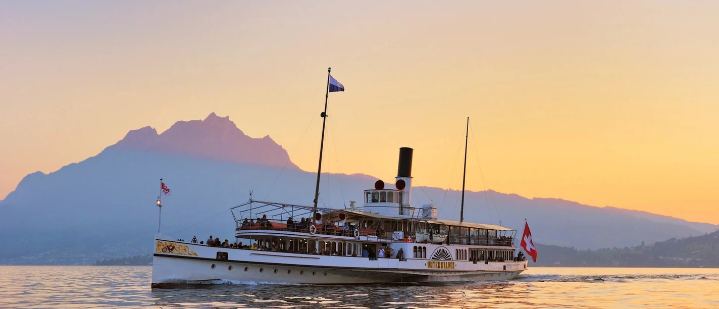 A natural spectacle on Lake Lucerne. The sunset cruise takes place on a motorboat or steamboat. Pure romance as the last rays of sun disappear behind the mountain peaks. You can book this cruise with or without a table reservation in the restaurant.