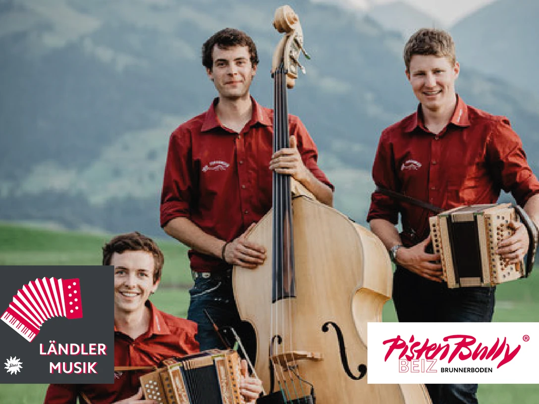 “Folk music that rocks!” On Saturday, 07 February 2026, the Furggiblick trio will be entertaining guests from around 11:00 a.m. to around 4:30 p.m. at the PistenBully Beiz Brunnerboden.