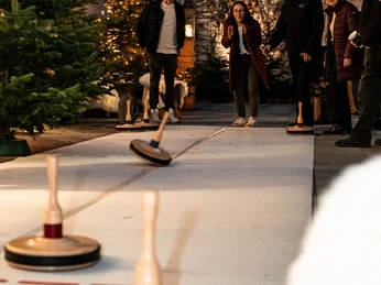 Experience authentic Alpine flair in a stylish ambience with a cozy hut, lounge furniture with furs and glowing fir trees. Enjoy our winter specialties, try hot trendy drinks and discover exciting outdoor activities such as curling or ice carving.