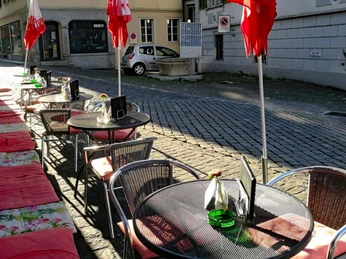 Whether you're enjoying an aperitif or a snack, the terrace directly on the main square gives you an overview of the goings-on in Schwyz village centre.