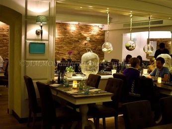 Dining at Ammos is like being on an island holiday thanks to the music, the sound of the Reuss in fine weather, and the relaxed atmosphere.
