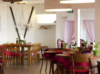 The rustic Rigstübli is the daytime restaurant for everyone, whether hikers, bathers or simply connoisseurs. Enjoy tasty Swiss specialities and seasonal dishes in a cosy atmosphere. The selection of delicious homemade cakes is also very special. You can enjoy the beautiful view of the foothills of the Alps from the terrace on the village square.