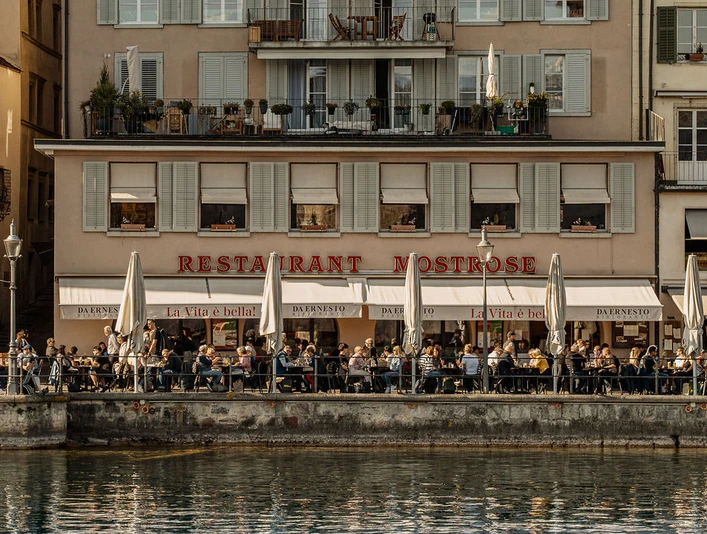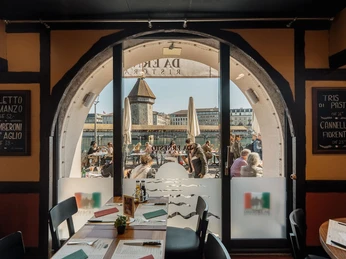 This Italian restaurant is located on the banks of the Reuss in the heart of Lucerne’s Old Town.