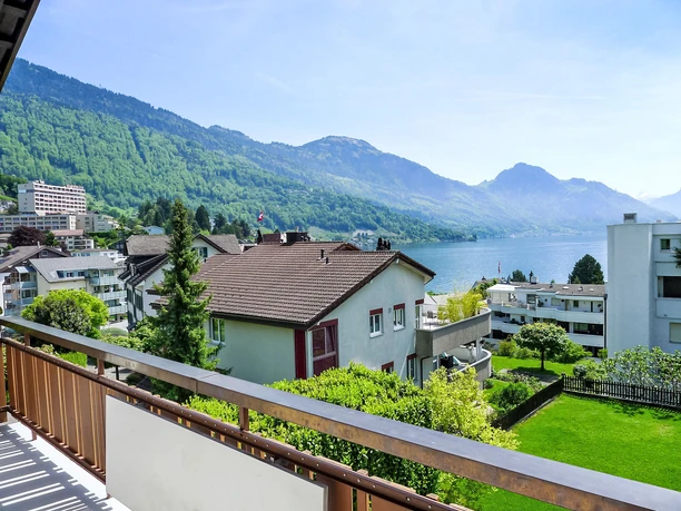4-room apartment 65 m2 on 2nd floor. Practical and cosy furnishings: living/dining room 15 m2 with satellite TV (flat screen), radio and CD-player. Exit to the balcony. 1 double bedroom 15 m2. 1 room 7 m2, with sloping ceilings with 2 beds. 1 room 12 m2 with 1 bed. Kitchen (oven, dishwasher, 4 ceramic glass hob hotplates, microwave, freezer) with dining table. Bath/WC. 2 balconies. Beautiful view of the lake, the mountains and the resort. Facilities: Internet (WiFi, free). Parking at the house. Please note: non-smokers only. Cosy 2-family house "Beau Site", 3 storeys. In the resort, 1 km from the centre, in a quiet, sunny position in the residential district, 300 m from the lake. For shared use: garden (fenced). Patio, garden furniture. In the house: central heating system, washing machine (for shared use). Motor access to the house. Stepped path to the house. Parking at the house. Grocery, supermarket, bakery, bus stop 500 m, outdoor swimming pool 500 m, lake Vierwaldstättersee 300 m. Tennis, riding stable 800 m, cable car 1.5 km, children's playground 500 m. Please note: the owner lives in the same residence. Additional accommodations can be booked.