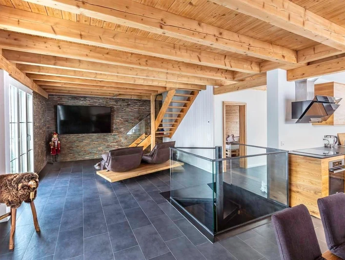 This completely renovated, dreamlike chalet is located on a quiet, private road with unobstructed and breathtaking views of Lake Lucerne and the surrounding mountains! Features: The luxurious chalet is fully equipped like a detached house. It has 3 bedrooms and is suitable for a maximum of 6-8 people. There is a car park for 2 cars in front of the house. A stone staircase leads to the main entrance with terrace. Ground floor The ground floor is equipped with a large cloakroom. On this floor you will find a table football table and a natural cellar with various alcoholic beverages at your disposal. There is also a laundry room (washing machine/tumbler available), a bathroom with shower and a bedroom for 2 people with a view of the lake. 1st floor A spiral staircase takes you to the 1st floor. There you will find a fully equipped, modern kitchen (fondue, raclette available) with dishwasher, induction hob, oven and a large food centre. There is also a large flat-screen TV (Netflix available) and a multifunctional KOINOR sofa as well as a fireplace and another bedroom with a small library. There are several exits to the large main terrace and the garden with jacuzzi and Finnish sauna. DG In the attic you will find another bedroom with a marvellous view of the lake. Upstairs there is a large bathroom with a shower and a hydromassage bath. There is also a lounge and a workstation with iMac and printer. Garden In the garden you will find various. In the garden you will find various seating options, deckchairs and a gas barbecue for your BBQ. The highlight is a jacuzzi with a view of the lake and a Finnish sauna! The house has underfloor heating and can be switched on and off via thermostat or SMS. The entire chalet was completely renovated in 2020. Enjoy your holiday in this absolute dream home with unforgettable views of the Central Swiss mountains and Lake Lucerne!