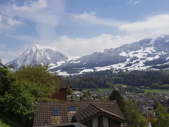 Discover this large and cosy holiday flat of around 40m² with a private entrance, located in a picturesque Swiss chalet in Sarnen. The flat not only offers a slightly elevated position with breathtaking views of the lake and surrounding mountains, but also benefits from its very central location. With direct access to public transport - the bus stop is right in front of the house - this holiday flat is the ideal starting point for your explorations. The interior of the flat is ideally designed for 2 people and does not lack any comfort, even with two extra beds. In addition to a dining area, the fully equipped kitchen has all the amenities such as cutlery, plates, two types of coffee machines (Nespresso and filter), microwave, oven, fridge and kettle to guarantee a pleasant stay. The large garden with its shady trees and a fenced part, ideal for dogs, invites you to linger and relax. Even without air conditioning, the flat remains pleasantly cool in midsummer thanks to the park-like grounds. You can enjoy relaxing hours outdoors on the terrace with table, chairs and parasol. The huge terrace itself offers a marvellous view of the mountains and the lake, which is particularly inviting in the evening. Sarnen, the charming town in which the flat is located, offers numerous sights and activities. Just 800 metres from Sarnen railway station, you will find historical sites, the town centre and Lake Sarnen in the immediate vicinity. Lucerne, Interlaken, Engelberg and the Bürgenstock are just a short drive away for excursionists. Ski resorts such as Mörlialp, Melchsee Frutt or Hasliberg can also be reached in around half an hour. For sports enthusiasts, the surrounding area offers everything from golf, mountain biking, alpine skiing and cross-country skiing to horse riding. This holiday flat in Sarnen offers complete privacy with no need to share facilities with other guests. An ideal retreat for couples or small groups looking for both relaxation in nature and proximity to cultural and sporting activities. Book now for an unforgettable stay in the heart of Switzerland! You can also find us on AirBnB with many authentic reviews. Basic information - Pets allowed: 3 - allowed size of dogs: large (more than 60 cm) - Type of property: holiday apartment - is located in: nothing applicable - type of apartment: Granny flat - type of building: Detached house - Floor on which the object can be found: Ground floor - Total number of floors in the building above the ground floor: 2 - Year of the last complete renovation : 2025 - not observable from the street - Owner lives on the property - Contactless check-in/check-out - non-smoking - Number of bedrooms: Studio apartment (no separate bedroom) - Number of bathrooms: 1 Top features - WiFi - air conditioning: no - heating: Everywhere - underfloor heating: no - terrace - garden: For sole use - completely enclosed (by wall, fence or hedge) - dog-proof by a fence (completely fenced in) - Total of private car parking spaces: 2 - ㄴ of which garage spaces: None - ㄴ of which carport spaces: None - ㄴ of which private outdoor parking spaces: 2 Sleeping in the living area - double bed (1.80 m width) - bedroom is dimmable Bathroom bathroom 2 - shower - basin - toilet - hair dryer - daylight Cooking/Living - coffee machine: espresso coffee pot, coffee machine - fridge/freezer: freezing compartment, fridge - stove: stove - kitchen hood - oven - toaster - microwave - electric kettle - dishtowels - size of kitchen: 10 m² - number of dining tables: 1 - number of seats: 4 - number of living rooms: 1 - living room is dimmable Entertainment - TV: TV, cable TV - DVD player - radio Utility - washing machine: For communal use in the building - clothes drying rack - iron - cleaning products - fan: 1 - standing fan - fire extinguisher - smoke alarm Sustainability - Waste recycling - Bio garbage available - glass recycling available - paper recycling available - plastic recycling available - House Insulation - insulated roof - insulated facade Outside area - outdoor furniture - grill/barbecue: grill/barbecue Surroundings - view: mountain, sea/lake, garden, forrest, lawn, valley - Nearest town centre: 1,0 km - Grocery store: 1,0 km - restaurant: 1,0 km - train station: 1,2 km - airport: 87,0 km - motorway: 2,0 km - port: 1,0 km - distance public transport: 100 m - beach: 1,0 km - grass beach: 1,0 km - water (sea, lake, etc.): 1,0 km - lake: 1,0 km - boat hire - playground: 1,0 km - public swimming pool: 1,0 km - riding facility: 3,0 km - ski vacation - distance to ski slope: 10,0 km - distance to ski school: 10,0 km - distance to cross-country skiing: 10,0 km - distance to skiing bus terminal: 100 m - mountain rail: 11,0 km Distinctive features - chalet type of building: Detached house.
