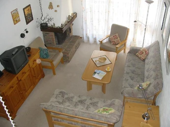 Inside, the Zöller flat has an inviting 3 ½ room layout that can comfortably accommodate up to 6 guests. Two bedrooms - one with 2 beds and another with 3 beds - as well as an additional gallery with a sleeping area, promise peaceful nights. A spacious living room with a cosy fireplace corner invites you to linger. The kitchen is also fully equipped with an electric cooker, microwave, dishwasher and, of course, a coffee machine. There is a washing machine/tumbler in the cellar for your clothes, which can be used via a coin-operated machine.