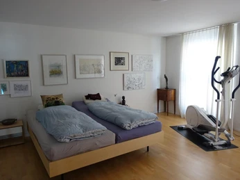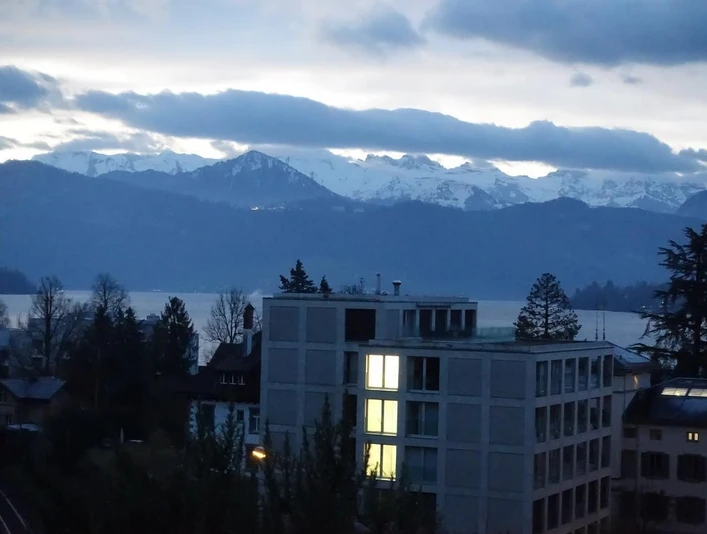 The spacious flat is located in a quiet neighbourhood in an elevated position on the right side of the lake on a quiet neighbourhood street with no through traffic. You can hardly hear anything from the nearby main road or the railway. The house is 35 years old and has been constantly adapted to technical developments. The 4 ½ room flat is generously proportioned and boasts a large terrace with views of Lake Lucerne and the mountain panorama.