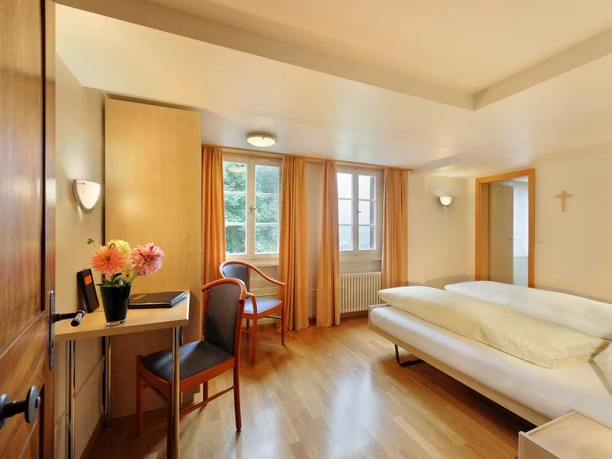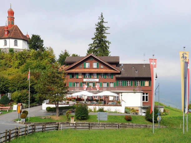 In the geographical center of Switzerland, on a plateau 750 meters above sea level with magnificent panoramic views. Located directly on the medieval Way of St. James. From Lucerne approx. 20 minutes by car, from Zurich / Basel approx. 90 minutes. By train via Lucerne - Sachseln and then by postbus to Flüeli-Ranft. The inn (16 rooms) and chalet (17 rooms) Paxmontana is located in a central location between the house and the birthplace of St. Brother Klaus.