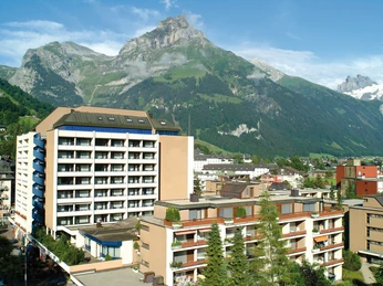 The H+ Hotel & SPA Engelberg has 128 comfortable rooms, 32 of which are apartments with 2 rooms. The rooms are all equipped with minibar, satellite TV, wireless LAN, desk, safe, hair-dryer and have a balcony with a mountain view. Are you into total relaxation? Then unwind in our wellness area with swimming pool, sauna, steambath, Venus tub and fun showers. Then there's table tennis and a children's playroom to ensure the kids have a break too. Stokke push-chairs and high-chairs are on hand for our younger guests. Our traditional, Swiss-style Titlis restaurant serves seasonal specialities. While the lively La Strega ristorante is recognised as the "best Italian restaurant" in Engelberg. If you just want to get together for a snack, a refreshing drink or a cup of coffee, then it's hard to resist the Regina Bar. Seven daylit conference rooms with the very latest conference technical systems have room for between 12 and 200 persons.