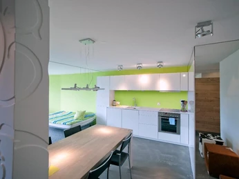 2-room flat in the centre of Weggis, exclusive new furnishing in "Högerli style" relief/chestnut wood walls, modern kitchen (GWS/HERD/KS/microwave), bedroom with Hasena bed, bathroom with wood panelling, 2 sofa beds in the living room (can be separated into a 2nd bedroom with blackout curtains). 2 balconies (side by side) offer an unobstructed view of the Pilatus and Lake Lucerne. 42" flatscreen. Indoor swimming pool for shared use, as well as sauna. The Alpenblick restaurant with its authentic "sinnvollgastro" concept is within easy walking distance. In the underground car park, number 8 is available. This is 20 metres from the lift (1 floor) and another 5 metres from the flat door. A small shopping centre (150m from the house) offers the necessary shopping facilities.