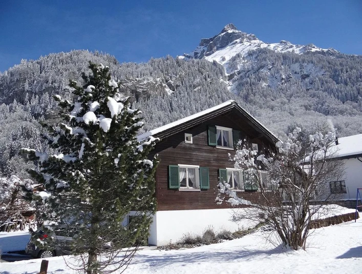 106 m2. More information by the provider: The wooden chalet (105.5 m2 on 2 floors) is located about 2km outside of the center in a quiet residential area. In winter there is a free ski bus stop nearby. On the ground floor there is a cozy living/dining room with a sofa, TV and dining table and an exit to the garden. Free wifi. Open and modern kitchen. Coffee maker. 2 double rooms. Modern shower/toilet. Upstairs (lockable, accessible via internal staircase), there is a large twin bedroom with TV and an open gallery with children's play area and a separate toilet. In the basement of the chalet there is a hobby room with table football and a ski room, as well as a garage. Two additional outdoor parking spaces in front of the house. Patio and garden with outside fireplace. Pets are not allowed. NON-SMOKING HOUSE. 4 room apartement on 2 floors: open kitchen, living room, 3 double rooms, shower-toilet, seperate toilet. Included: Bath- and kitchen towels, local tax. Excluded: Baby cot CHF 20.00, key deposit CHF 300.00 with credit card.
