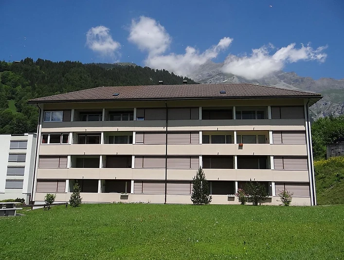 48 m2. More information by the provider: Sunny and quiet 2-room apartment (48m2) on the 2nd floor of an apartment house: living/dining room with double sofa bed (150 cm, no night curtains), TV and radio. 1 double bedroom. Kitchenette. Bath/WC. Balcony with view to Mount Titlis. Garage. In winter free ski bus stop. For shared use: meadow. Children's playground. In the house: lift, ski storage, washing machine. Pets not allowed. No wifi. Non-smoking apartment. 2-room apartment on the 2nd floor: living/ dining room with double sofa bed (150cm), 1 double bedroom, kitchenette, bath/WC and balcony. Included: Bath- and kitchen towels, garage parking and electricity, local tax. Excluded: Baby cot CHF 20.00, key deposit CHF 300.00 with credit card.